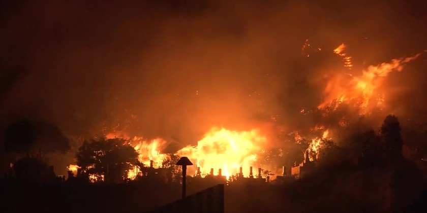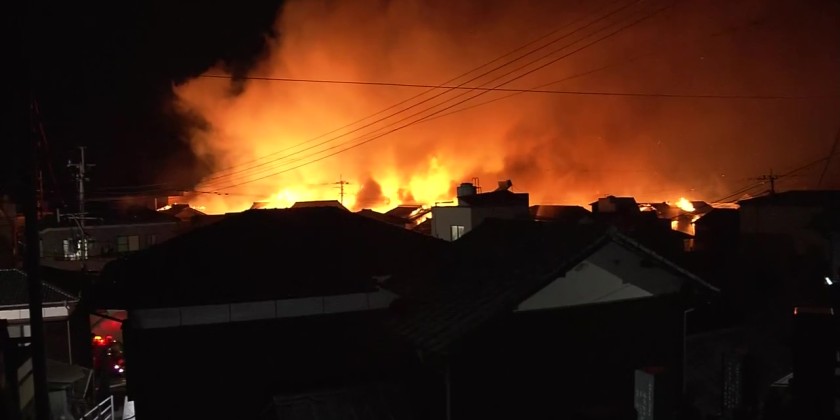 Fire officials received an emergency call from a resident at about 5:45 p.m. on Tuesday in Saganoseki, Oita City. The fire has spread widely, engulfing a residential area and burning surrounding forests. It has still not been brought under control more than 12 hours after the call.