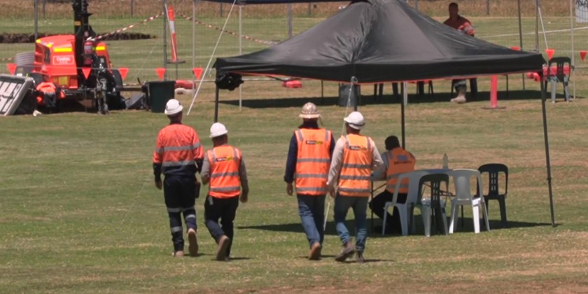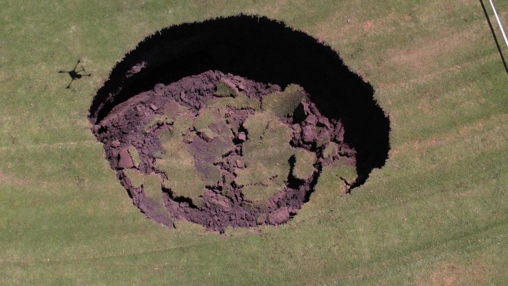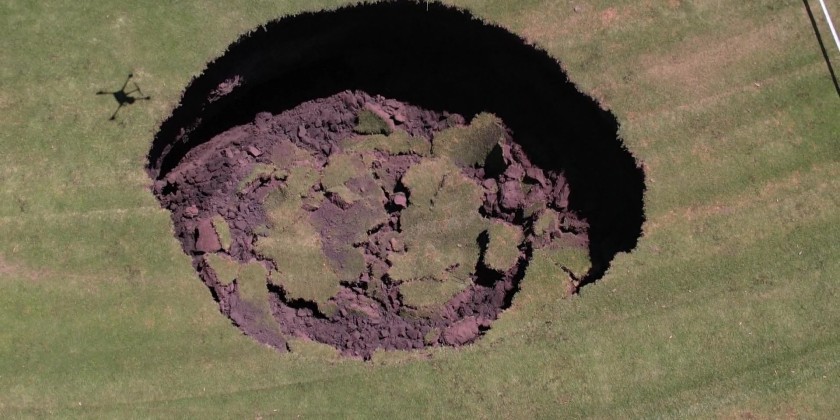 5 meters deep and 8 meters wide a giant sinkhole has opened up on a sports field in Heidelberg in Melbourne’s northeast, Australia. Emergency authorities have closed the oval and declared the area off-limits as investigations begin.