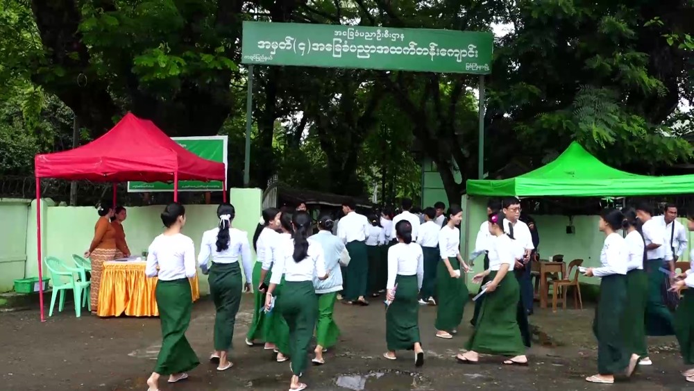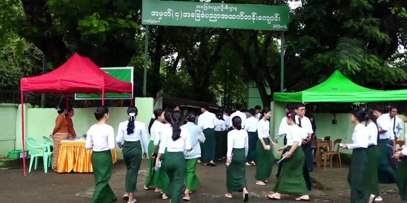 The 2025 Matriculation Examination is being held across 12 townships in Kachin State, with a total of 22 examination centers opened. The exams began on June 16. On June 18, the third day of the examination, Kachin State Chief Minister U Khet Htein Nan, along with responsible officials, visited No.8 Basic Education High School exam center in Myitkyina to observe and encourage students taking the exams peacefully.