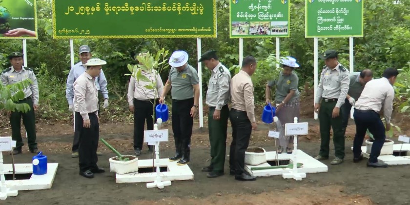In the morning on June 18, the Chief Minister and officials attended the 2025 Monsoon Tree Planting ceremony organized by the Kachin State Department of Rural Road Development taken place along the perimeter roads within the Sports and Physical Education Institute and other departmental land plots in Maw Phaung Village Tract, Myitkyina.
