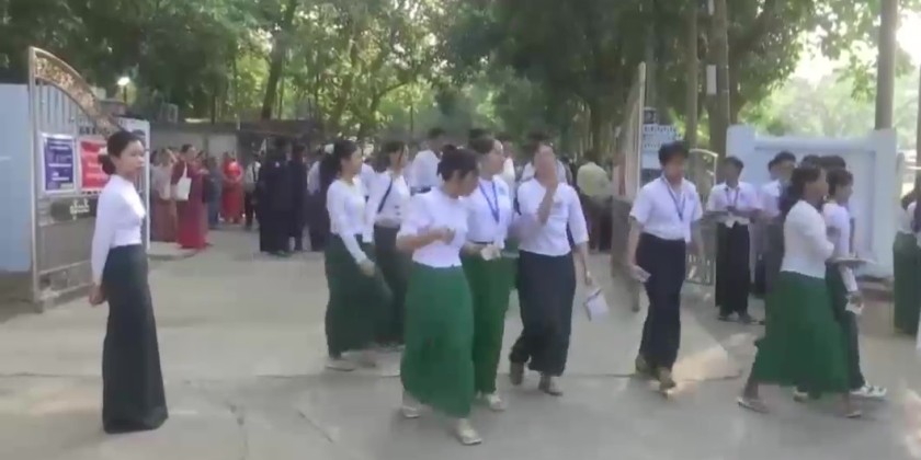 Chief Ministers, commanders, and responsible officials from various regions and states also visited exam centers to observe and provide encouragement. Students already sat for the Myanmar language on March 11 and English on March 12. After Mathematics exam, Chemistry and Geography will be held on March 14, Physics and History on March 16, and Biology and Economics on March 17. March 15 (Sunday) is designated as a holiday. Similarly, the technical, agricultural, and livestock university entrance examinations started on March 11 and will continue until March 18, with March 15 set as a holiday.