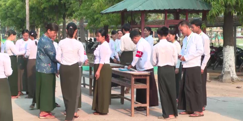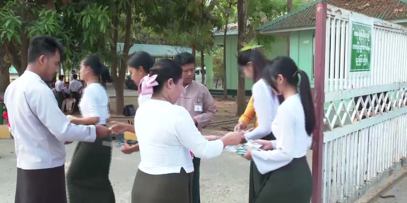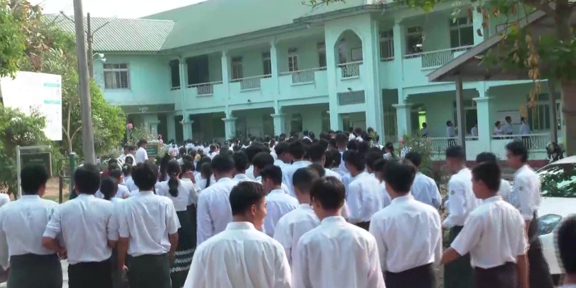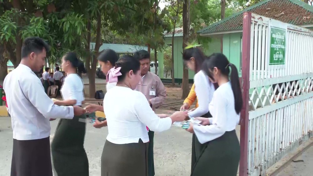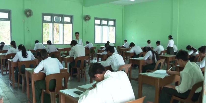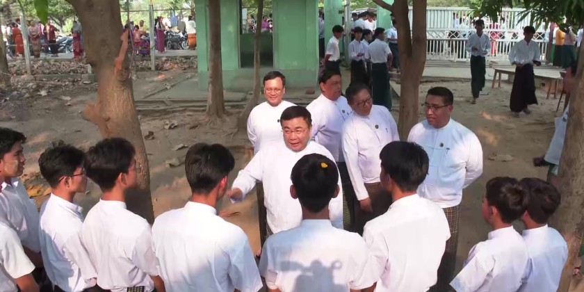 The Union Minister and party later proceeded the examination center at No. 22 Basic Education High School in Zabuthiri Township, oversaw the students who were peacefully taking their exam and coordinated the needs.