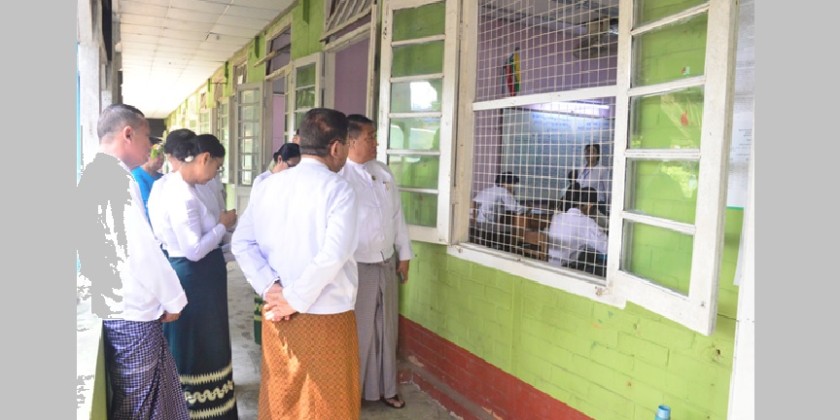 Union Minister for Education Dr Nyunt Pe, together with officials, visited the exam centers in Bahan, Sanchaung, Landamadaw, Dagon and Tamwe Townships of Yangon Region, encouraging the students. The Union Minister also visited the Yangon University to meet the professors who will serve as the Chief Examiners for 2024-2025 academic year matriculation exams.