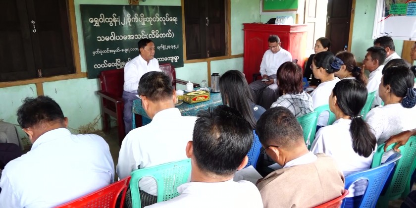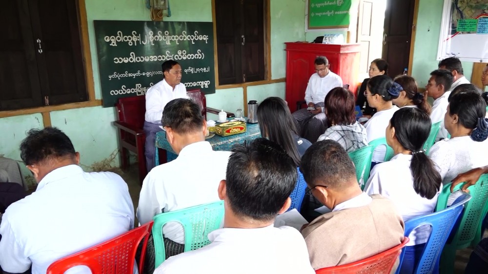 Upon arrival at the Yone Taw village of Lewe Township, the Union Minister and party cordially met with the locals. The officials from Rural Development Department of Lewe Township reported the village development tasks, measures to provide irrigated water with the use of solar energy and the work undertakings.