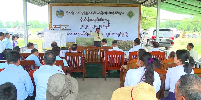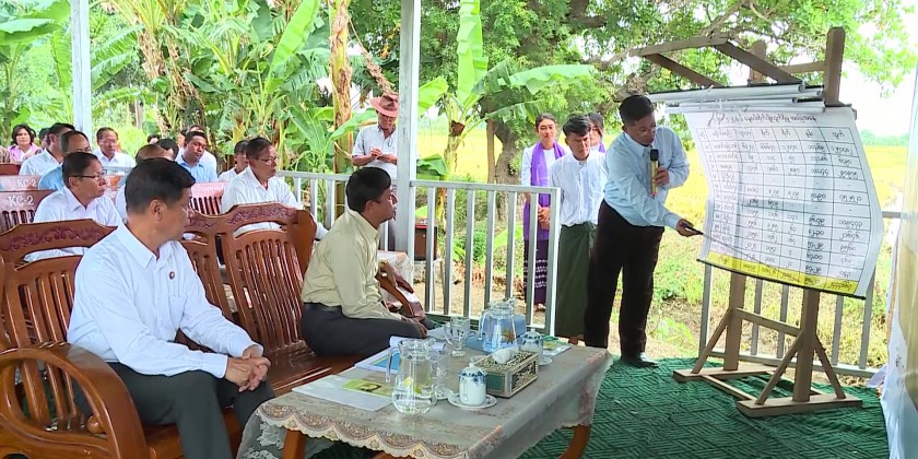 Chief Minister U Myo Aung and Deputy Minister for Agriculture, Livestock and Irrigation Dr Tin Htut attended the event. Prior to the harvesting, they met with the local farmers and stressed the need to transform into mechanized farming practice, utilizing the scientific cultivation methods effectively for double cropping which could achieve benefits.