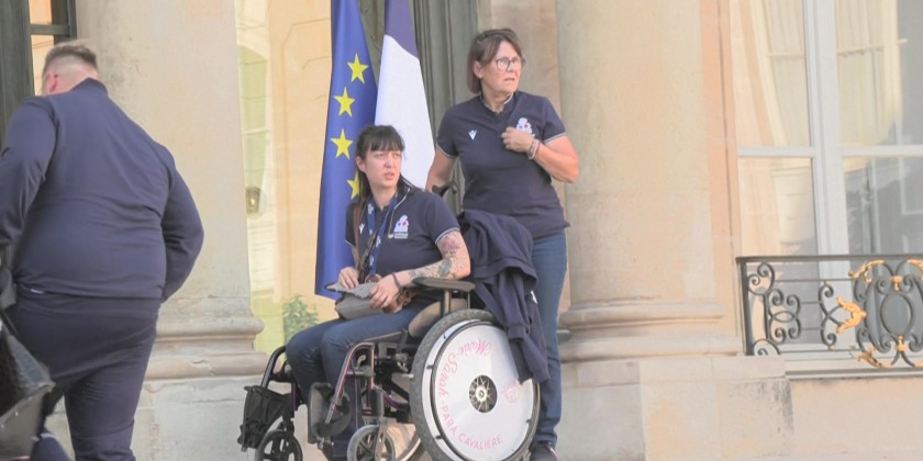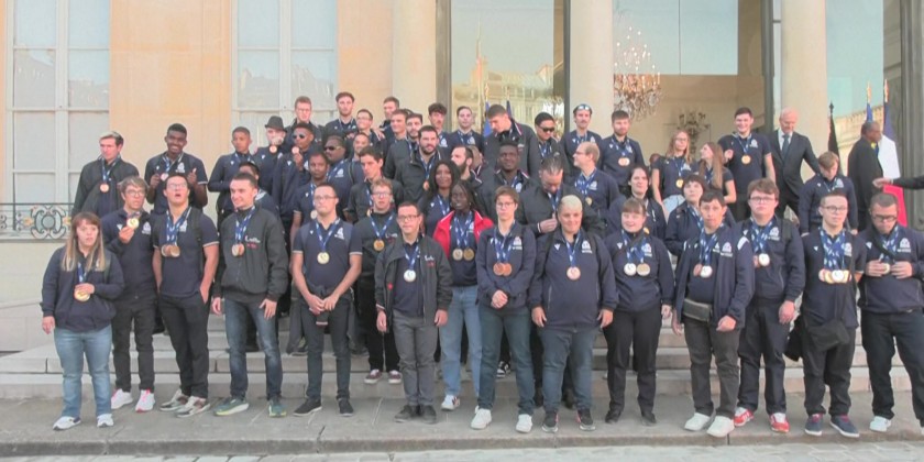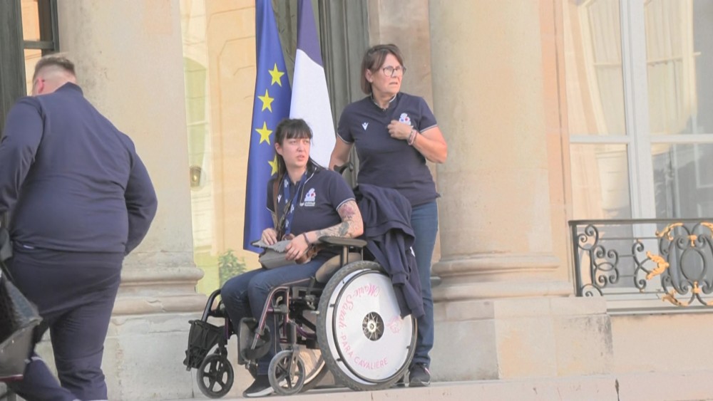 Several dozen athletes who won medals at the recent Virtus Global Games, a multi-sport competition for athletes with intellectual disabilities, arrived at the Elysee Palace for a meeting with French President Emmanuel Macron.