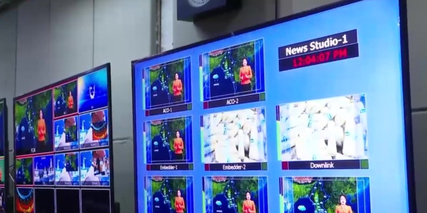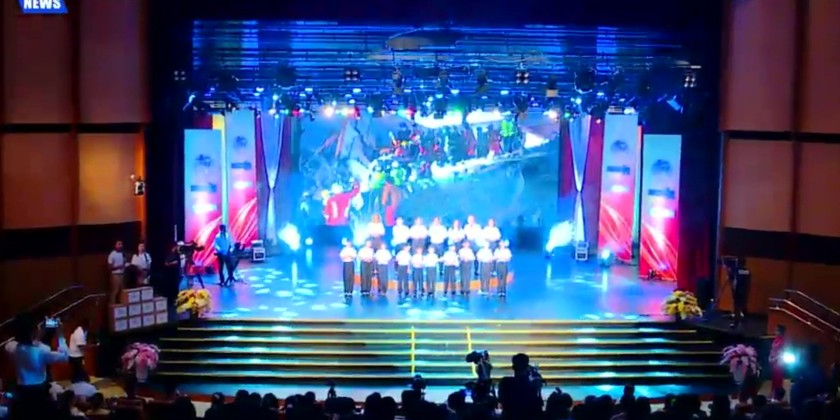 After the ceremony, the Union Minister, the Chinese Ambassador and party took a tour around the MRTV building, observing the production process at the News Studios. In the afternoon, video clips produced by the CMG were screened at the MRTV Auditorium, to entertain the quake-hit communities from Tatkone Township.