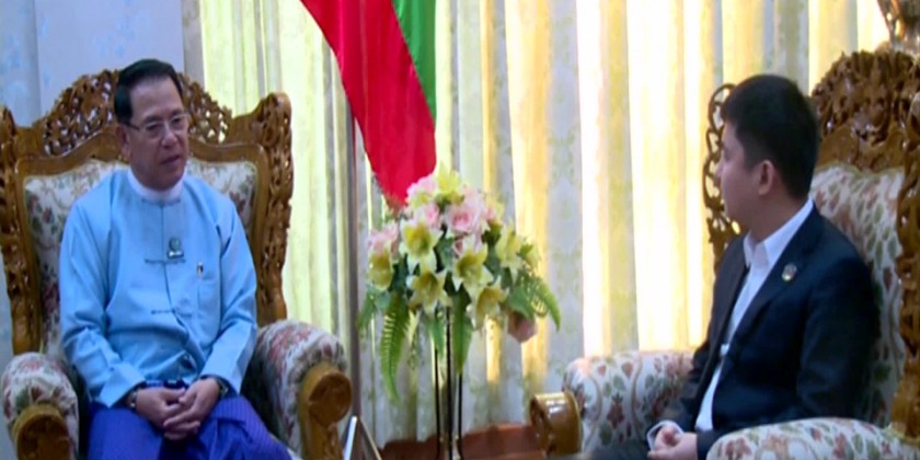 Union Minister for Information U Maung Maung Ohn received a delegation led by Chief Executive Officer of LAOSAT Company Limited Mr. Wu Fang Jie at the Ministry in Nay Pyi Taw on Thursday. They discussed for cooperative measures to develop media sector.