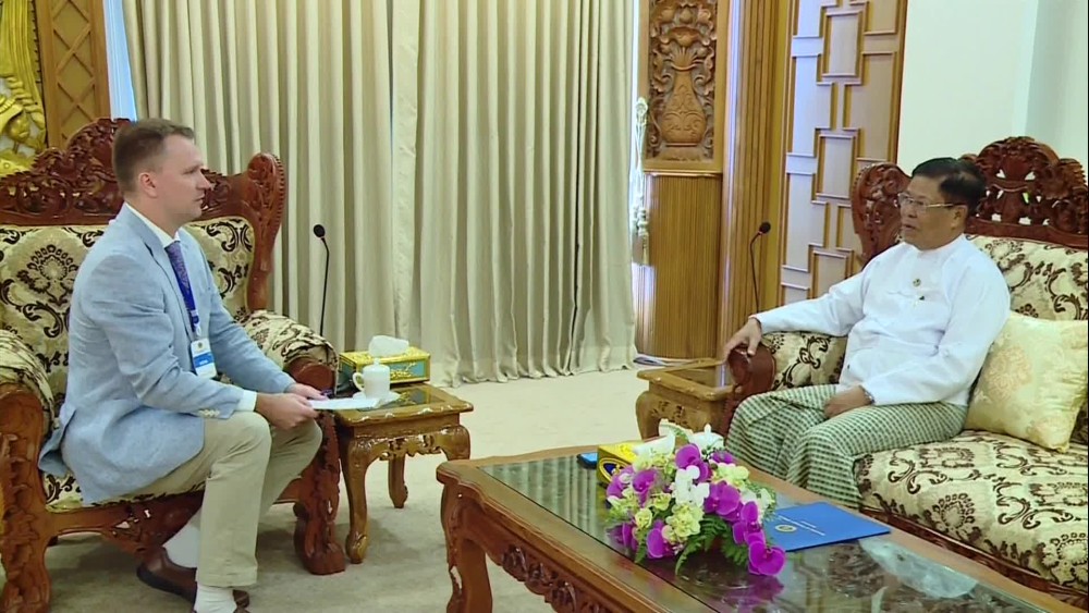 Deputy Prime Minister and Union Minister for Foreign Affairs U Than Swe was interviewed by Mr. Igor Brovarnik, Bureau Chief in Thailand of the Russian News Agency ITAR-TASS at the Ministry in Nay Pyi Taw on 29 November.