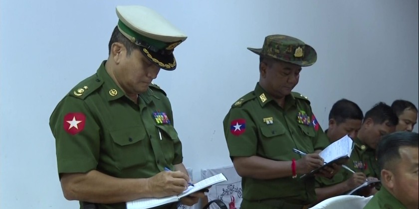 The Director of the Directorate of Public Relations and Psychological Warfare Maj-Gen Zaw Min TunĀ and Commandent of the Station presented brief history of the station, progress of implementation guided by SSPC Chairman and general necessaries.