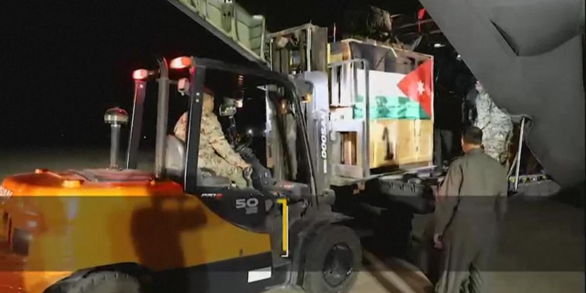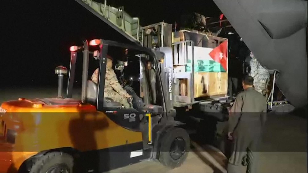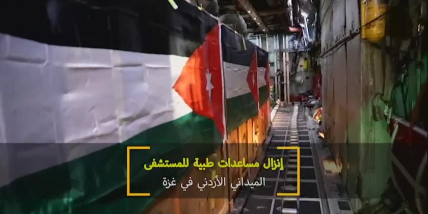 Jordan's Royal Court distributes images of its air force preparing a military plane to air-drop medical supplies to a field hospital in the besieged Gaza Strip.