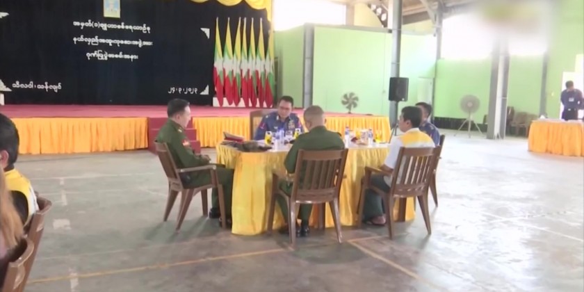 On behalf of the Commander-in-Chief of Defence Services Senior General Min Aung Hlaing, Ma-J Gen Htein Win gave honorary gifts to the Mobile Medical Team from Tatmadaw and Ministry of Health and catered with foodstuff.