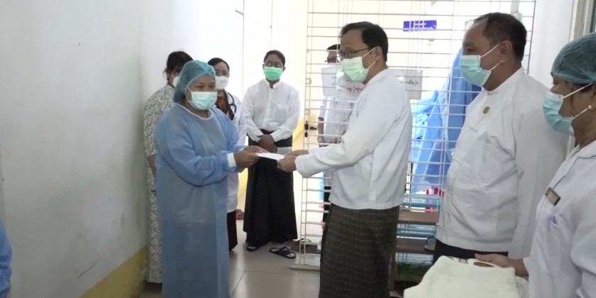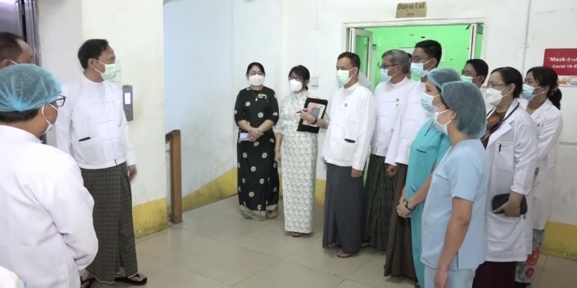 In the afternoon of 19th July, Union Minister for Health Dr. Thet Khaing Win together with concerned officials visited the Yangon Specialists Hospital (500 Bedded) and encouraged the patient who successfully had kidney transplant surgery for the 57th time on 6th July 2023.