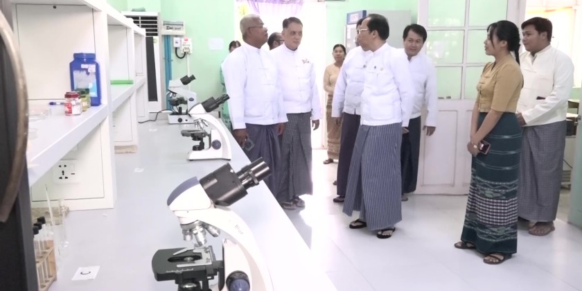 He then toured around the practical rooms, pharmaceutical chemistry lab, classrooms, faculties and library. The Union Minister and party later proceeded to the University of Medical Technology (Mandalay) and met with the staff. He instructed for applying teaching methods using international standard teaching aids, and conducting effective research works through continuous studies of changing medical technologies.