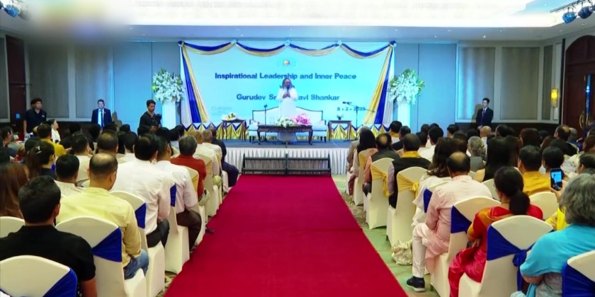 During his visit, the Gurudev met with entrepreneurs and businessmen at the Chatrium Hotel in Yangon to discuss about the inspirational leadership and inner peace.
