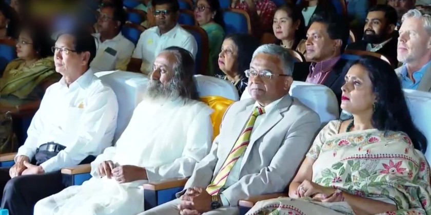The attendees also participated in a practical demonstration of meditation. In the afternoon, an event focused on knowledge and meditation took place at the National Theatre, where the Gurudev gave a lecture on Yoga practices, followed by a demonstration.