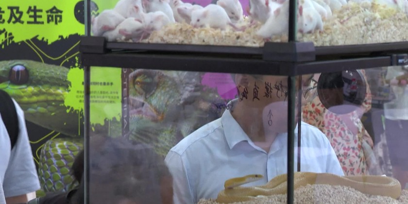Exhibitors at Pet Fair Asia in Shanghai show off exotic animals including meerkats, lizards and snakes. The five-day trade fair also includes pet food displays and a dog grooming competition.
