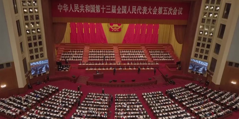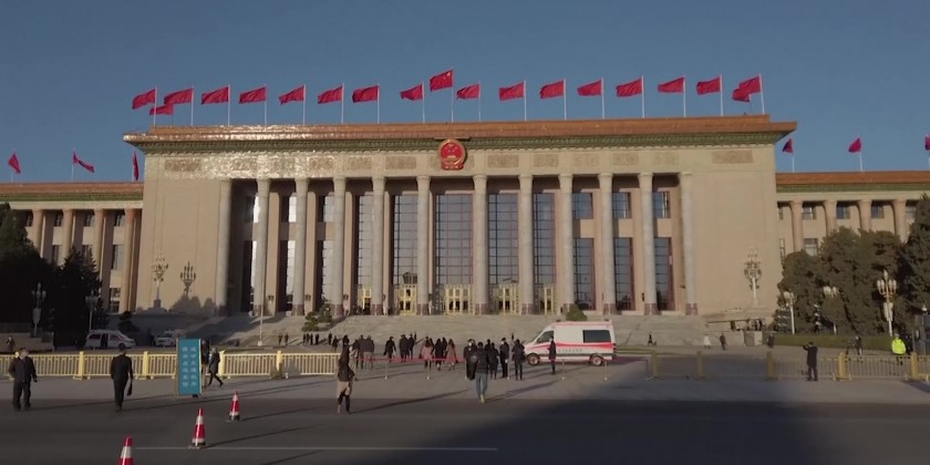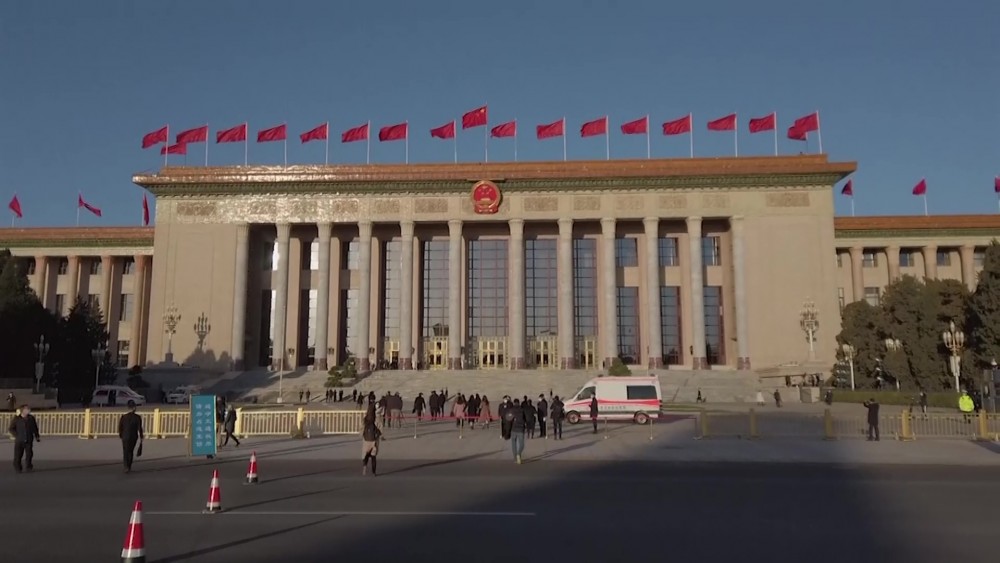 The ruling Communist Party will aim for “around 5.5%” growth this year, down from last year's 8.1% expansion, the country’s No. 2 leader, Premier Li Keqiang, said in a report to an annual meeting of its ceremonial legislature.