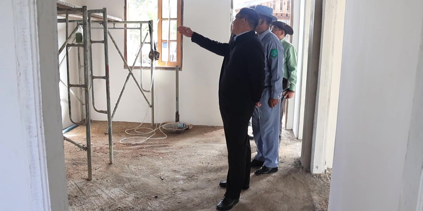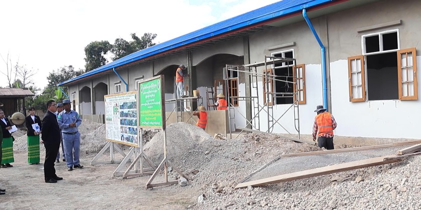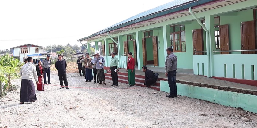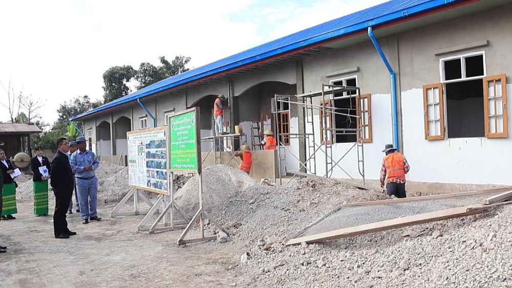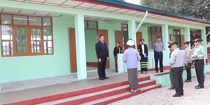 They also inspected the ongoing construction of a new 90 x 30 feet single-story reinforced concrete school building at Nam Baw Wun (b) Ward, Nam Baw Wun (Khar ) Basic Education Post-Primary School. Responsible officials explained the project completion status.