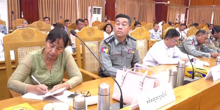 Afterwards, Rakhine State Chief Minister U Htein Lin discussed efforts undertaken to collaboratively develop Rakhine State, including initiatives in education, economy, and social affairs, ensuring their success. He also spoke about the supervision, inspection, and coordination of activities in accordance with the law, as well as the State Government's arrangements to provide rice and food supplies to personnel based on regional conditions to ease their living expenses, and to facilitate the sale of goods at affordable prices.