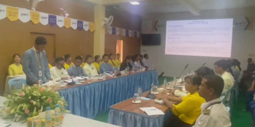 Member of the State Administration Council Deputy Prime Minister Union Minister for Transport and Communication Admiral Tin Aung San met the departmental officials from the Department of Transportation Planning, Road Transport Administration Department, Department of Civil Aviation, Department of Meteorology and Hydrology, Road Transport, Myanmar National Airlines, Post and Telecommunication Department at the state manager office of Myanma Posts and Telecommunications in Kengtung Township of Shan State (East) on Friday.