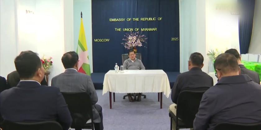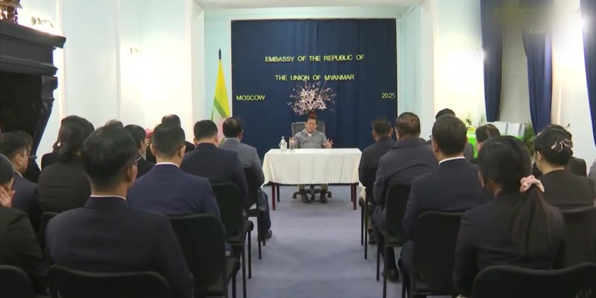 Acting President of the Republic of the Union of Myanmar, Chairman of the State Security and Peace Commission, Senior General Min Aung Hlaing, who is currently in the Russian Federation during his working visit, met families of the Myanmar Embassy to the Russian Federation, the Military Attaché’s office, and scholarship at the embassy trainees in the evening on September 26.