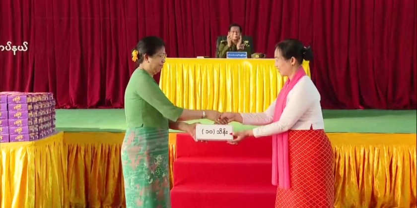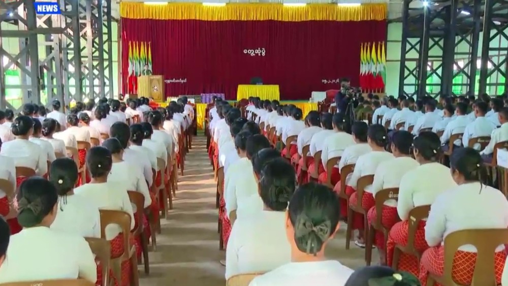 Emphasizing the development of technology, the Senior General urged all to fully utilize the modern technologies in implementing for regional peace and stability, in cooperation with Myanmar Police Force and local community. During the meeting, food stuff and cash rewards were presented for the military officials, Tatmadawmen and families and the Maternal and Child Welfare Association of the station.