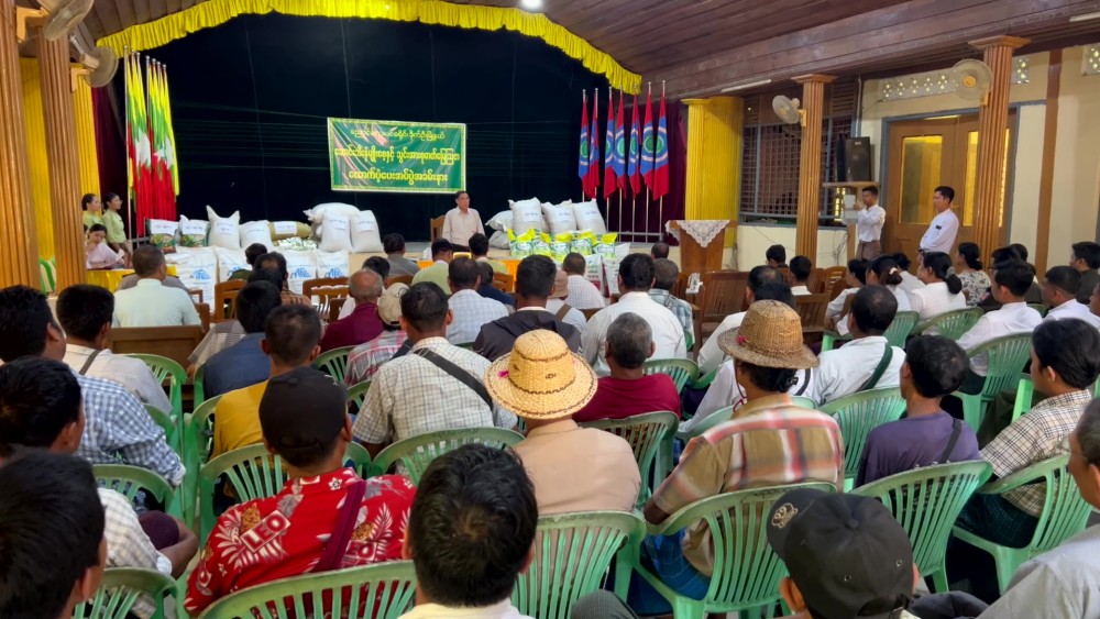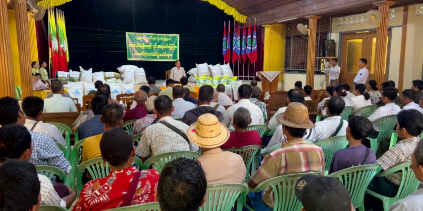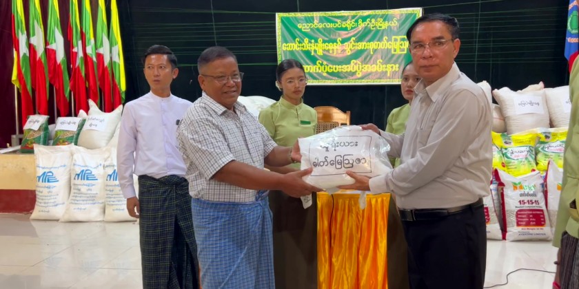 Bago Region Chief Minister U Myo Swe Win met with local farmers in Daik-U Township, Nyaunglebin District, and attended the ceremony to distribute winter crop seeds and fertilizers.