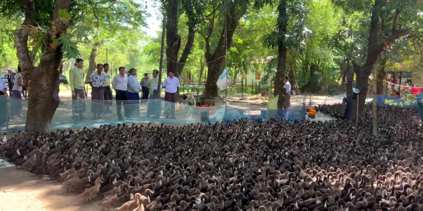 He then handed over crop seeds, and fertilizers to local farmers and encouraged them to strive for food security and higher income. Later, the Chief Minister visited the duck farm in Pyinmalwin village, where 7,000 Khaki Campbell ducks are being raised successfully with government support.