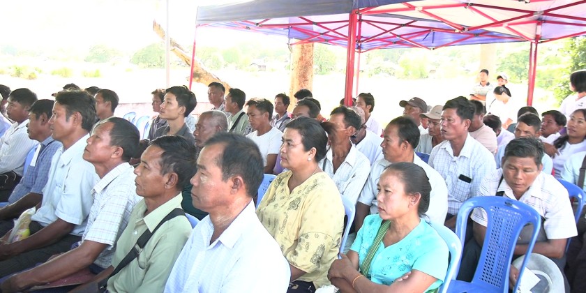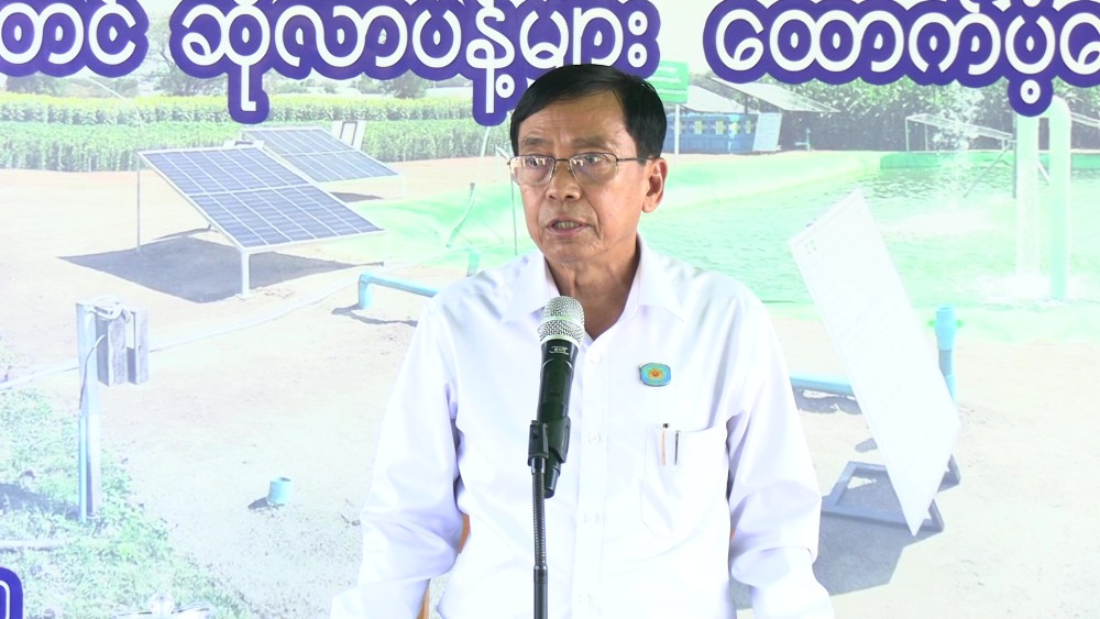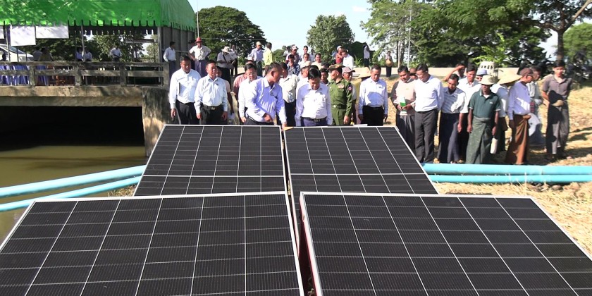 A meeting with farmers and providing low-lift solar pumps for double cropping were held, on Sunday, beside the Pin Laung Road in Be Kone Village, Zabuthiri Township, Nay Pyi Taw.