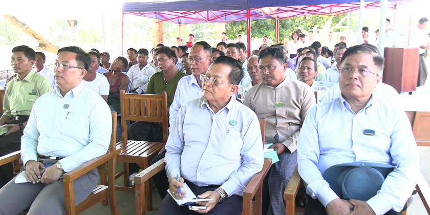 Nay Pyi Taw Council Chairman U Than Tun Oo, Council members, responsible officials, and local farmers attended the event. First, Nay Pyi Taw Council Chairman U Than Tun Oo emphasized that during double crop cultivation and production, from land preparation, planting, weeding, pesticide application, and fertilizing up to harvesting and threshing, it is necessary to achieve full mechanization in the agricultural sector.