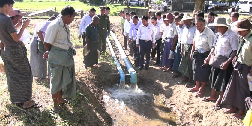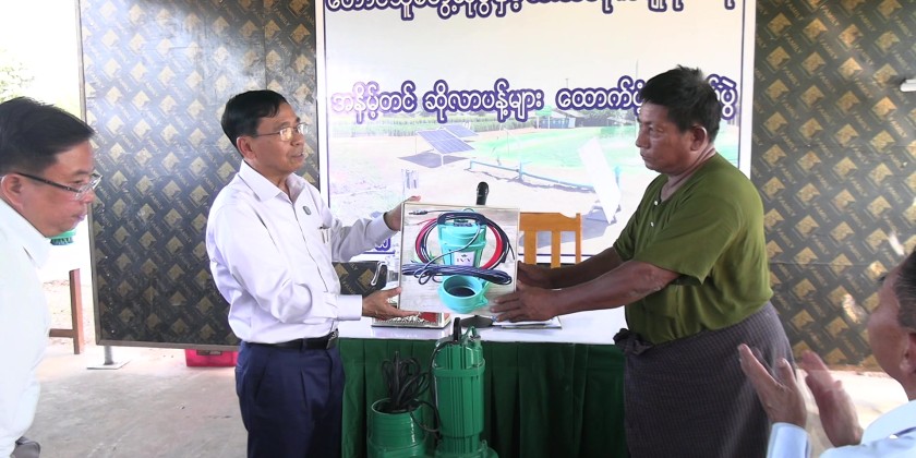 Afterwards, the attendees provided additional discussions and presentations. The Nay Pyi Taw Council Chairman and Council members then handed over the low-lift solar pumps to the farmers. Subsequently, the Nay Pyi Taw Council Chairman and the attendees observed and encouraged the irrigation activities being carried out using the low-lift solar pumps.