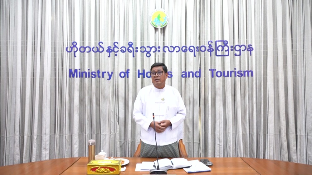 The meeting was held at the Nila Hall of the Ministry of Hotels and Tourism in Nay Pyi Taw. During the meeting, the Union Minister stated that the Ministry is coordinating necessary support to help hotels affected by the recent Mandalay earthquake quickly resume operations.