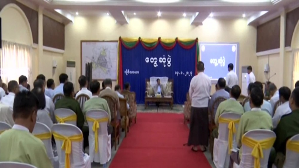 In this meeting at the KaNaung Hall of the Hlaingthaya Industrial Zone, the Senior General heard report on data of Hlaingthaya Township, history of the Hlaingthaya Industrial Zone and operations, industrial zones development works, roads upgrade and plans.