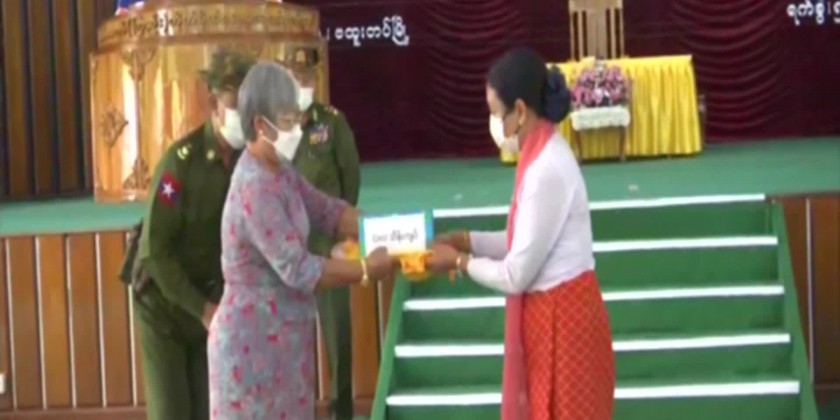 The Vice-Senior General fulfilled the requirements submitted by the Tatmadaw members and families. After the meeting, the Vice-Senior General presented foodstuff for instructor officers, officers, other ranks and families of the station to the commandant. Daw Than Than Nwe, the wife of the Vice-Senior General, presented cash assistance for the maternal and child welfare association to the wife of the commandant and Lt-Gen Aung Zaw Aye of the Office of the Commander-in-Chief (Army) domestic foodstuffs to an officer.