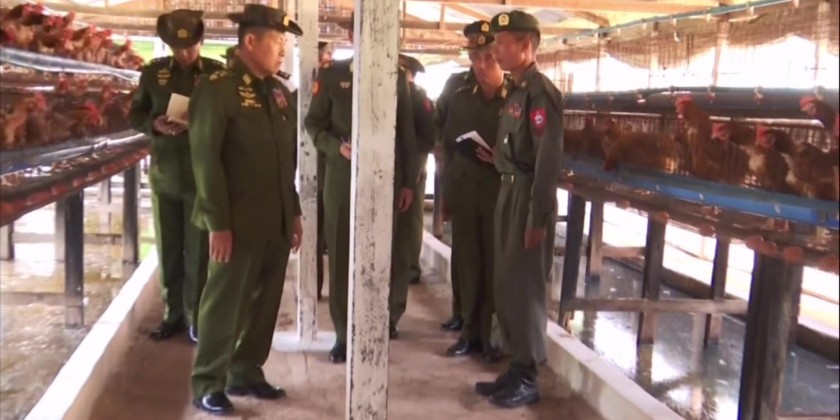 Then, the Vice Senior General and oficials toured local battalion and inspected the livestock breeding and poultary farming. The Vice Senior General also visited Hnee Pagoda, offered flower, water, oil lamps and gold foils and donated offertories to the presiding sayadaw.