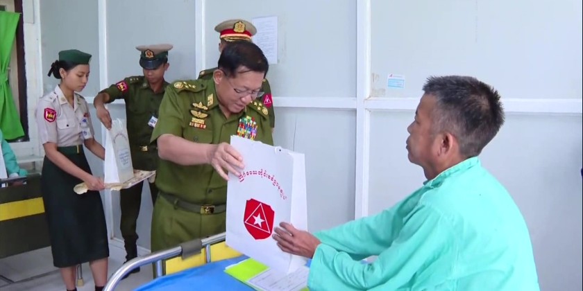 During the meeting, foodstuff and cash assistance were provided for the military officers, Tatmadawmen and families as well as for the Maternal and Child Welfare Association. Then, the Senior General and party visited the Keng Tung Station Defence Services Hospital and comforted the patients.