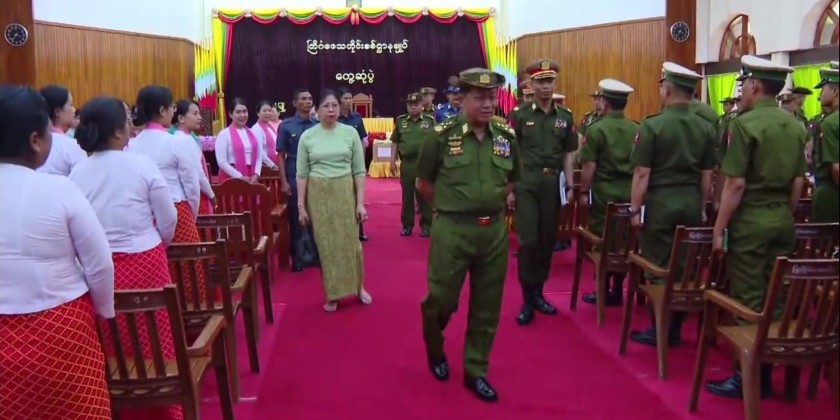 Chairman of the State Administration Council Commander-in-Chief of Defence Services Senior General Min Aung Hlaing met with the military officers, Tatmadawmen and families at Keng Tung Station of Triangle Region Command on Friday.