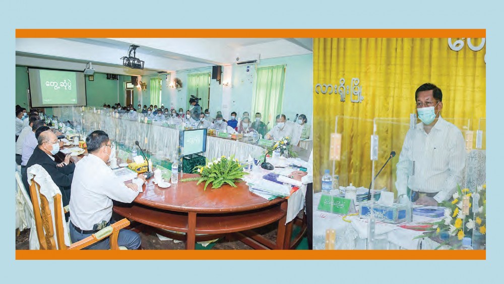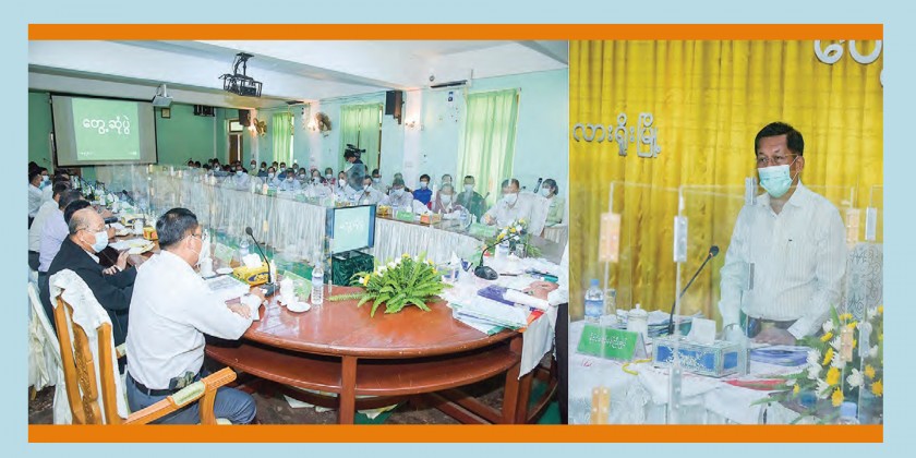 The Chief Minister of Shan State and officials reported on progress of regional development, control of COVID-19, arrangements for industrial zones and hotel zones in respective areas, enhancement of agriculture and livestock sector and health sector, and development of Lashio District.