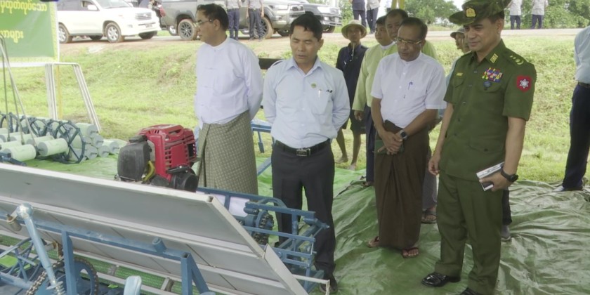 Following the meeting, the Union Minister, the Chief Minister, and officials inspected agricultural machinery, rice transplanters, and direct seeders. They also observed the cultivation of Aung Naing Toe paddy using a rice transplanter in the field.