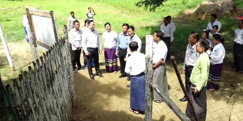 During the visit, the Township Head of the Department of Rural Development briefed the officials on various matters, including the situation in Nyaung Pin Thar and Ma-Gyi-Pin villages after suffering from natural disasters of Typhoon Yagi during 2024, damage to some pagodas and houses caused by the strong Mandalay earthquake on March 28, reconstruction of 23 houses in Nyaung Pin Thar Village by the Myanmar Tourism Federation, volunteer groups, and donors and a goat farming project supported under a Nay Pyi Taw Council initiative.