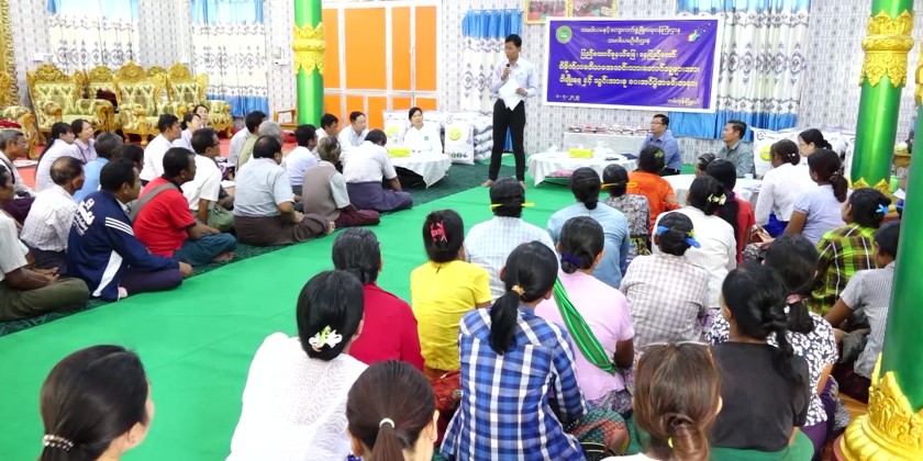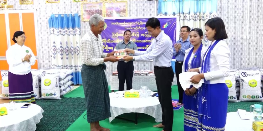 After that, the Deputy Minister and Council Member proceeded to Ta-gon-taing Village in Tatkone Township. There, they visited a monastery, offering donations to the Presiding Sayadaw. They then attended a seed and fertilizer distribution ceremony held at the monastery, organized for cotton farmers from Ta-gon-taing Village, and Gwaypin Model Village Cooperatives societies.