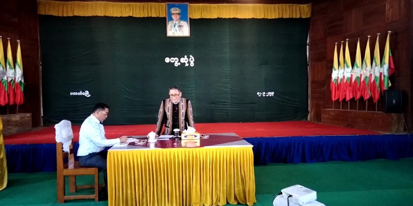 A member of State Administration Council Dr. Hmu Htan together with Chin State Chief Minister Dr. Wong Hsum Htan, State Minister for security and border affairs, directors General, State level departmental officials met with the district and Township level departmental personnel, ward Administrators, townselders, business entrepreneurs at the Kimo Hall of the Paletwa Township General Administration Department at 11 AM on 12th September.