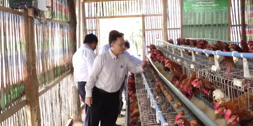 Moreover, the SAC members observed the layer chicken demonstration farm, pig farm and Napier grass plantation implemented with the Shan State Government fund in Metman Township.Next, the SAC members, Chief Minister, State Minister, Chairman of Wa Self-Administered Division Administration body and departmental officials also observed the chicken farm raised by the Border Guard Forces in Metman Township.