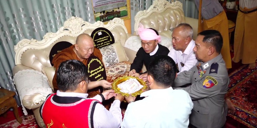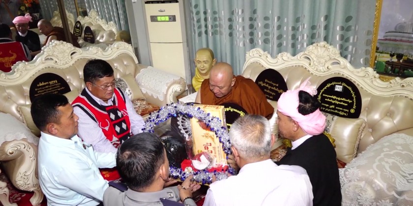 Afterward, the SAC members and party paid homage to the presiding Sayadaw of Larshop Man Hsuu shan monastery, Chair of Larshop Township Sangha Nayaka Committee Dr. Baddanta Ponnyananda and offered the offertories and cash donation.