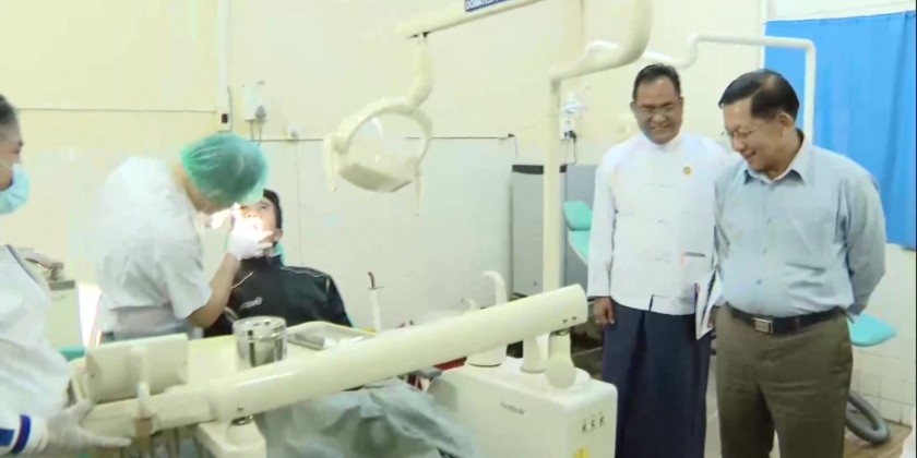 At the Minbu General Hospital, the Acting President and party viewed the health care services being provided to the patients, making cash donation for the hospital. Earlier in the day, the Acting President and party visited the View Point of Minbu and heard reports on upgrading of Magway-Minbu road.