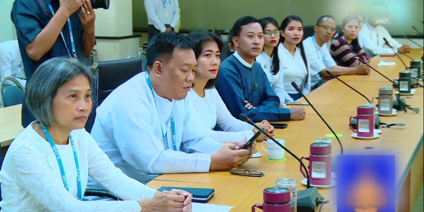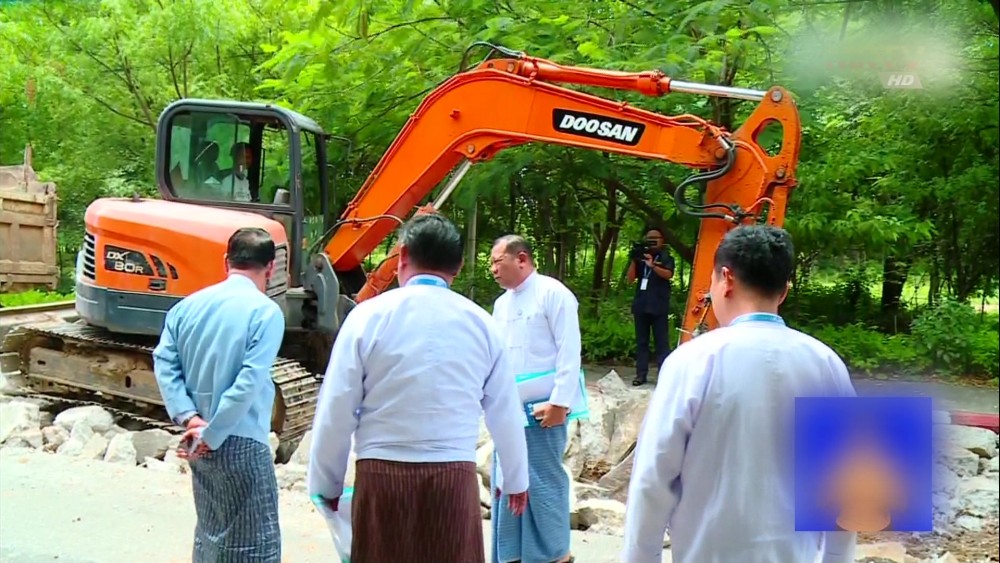 He also inspected the concrete road repairs at Myanma Radio and Television (MRTV) and met with the staff. The Union Minister first inspected the repair work on the Dhamma hall's ceiling and wall tiles at Mahajanaka Monastery. He coordinated the necessary work and then paid homage to the Presiding Sayadaw Bhaddanta Wunnaraha and offered the offertories.