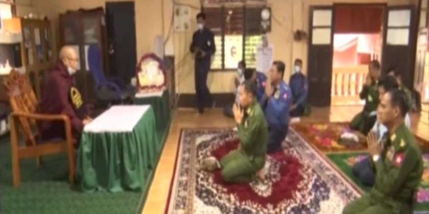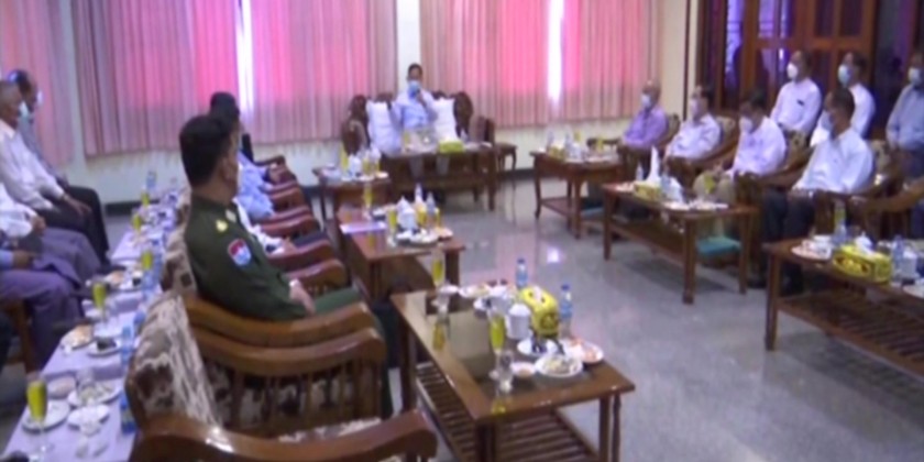 Vice-Chairman of the State Administration Council Deputy Commander-in-Chief of Defence Services Commander-in-Chief (Army) Vice-Senior General Soe Win meets departmental officials, district and township level officials at the hall in Kawthoung on 1 May 2022.