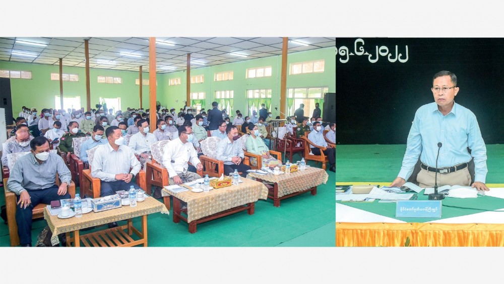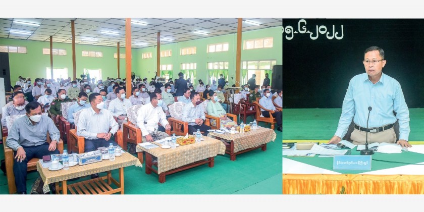 First, Township Administration Body Chairman U Htay Aung reported on the progress of An Township, and the Vice-Senior General coordinated necessary measures with officials. In his speech, the Vice-Senior General said as An Township was upgraded to the district level on 30 April 2022, it can operate the administrative process directly linking with the state level in a rapid manner with no need to pass Kyaukpyu.