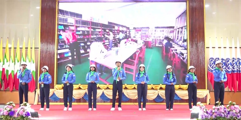 The outstanding students then performed the song “Youth Strength,” and the Deputy Director (Education) from the Rakhine State Education Office explained the planned trips to the outstanding student camps.